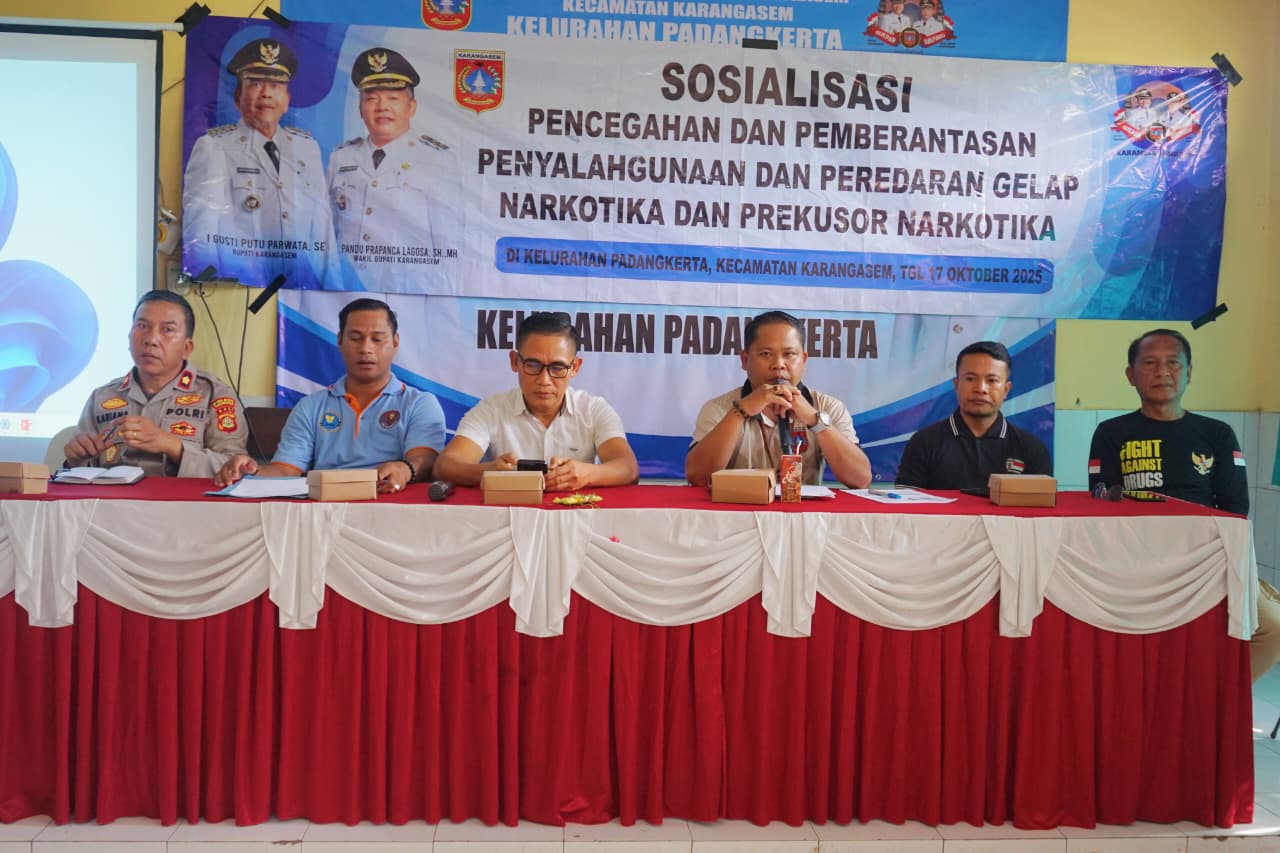 Rangkaian kegiatan Pencegahan, Pemberantasan Penyalahgunaan, dan Peredaran Gelap Narkotika (P4GN) yang telah diselenggarakan secara roadshow di delapan kecamatan di Kabupaten Karangasem sejak 8 Oktober, resmi ditutup di Kelurahan Padangkerta, Kecamatan Karangasem, pada Kamis, 17 Oktober 2025. Sosialisasi P4GN di Padangkerta ini dihadiri oleh 30 peserta yang terdiri dari tokoh masyarakat, tokoh adat, dan perwakilan pemuda-pemudi setempat. Kegiatan ini juga dihadiri oleh narasumber dan perwakilan dari instansi terkait, termasuk Satres Narkoba Polres Karangasem, Kapolsek Karangasem, Badan Narkotika Nasional Kabupaten (BNNK), dan Kesbangpol Bidang Wasbang. Lurah Padangkerta, I Nyoman Suardana, S.H., [...]