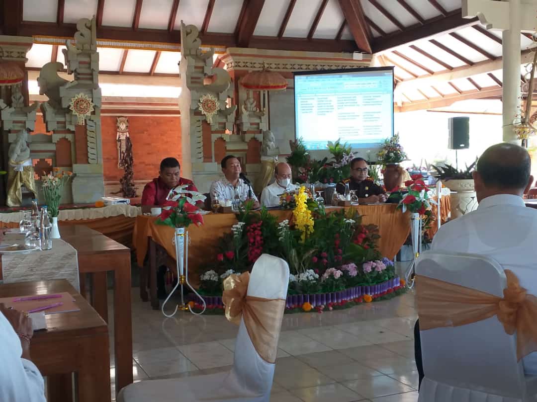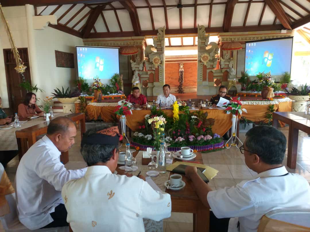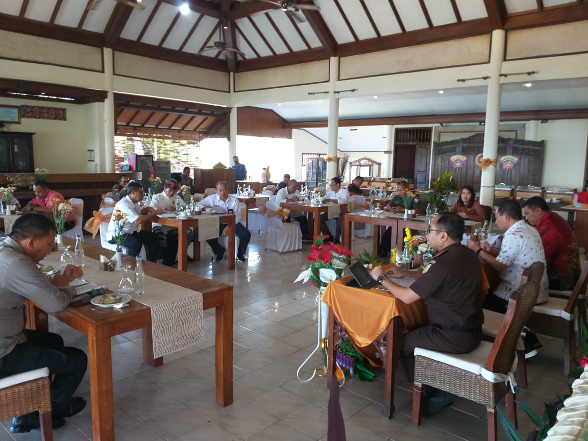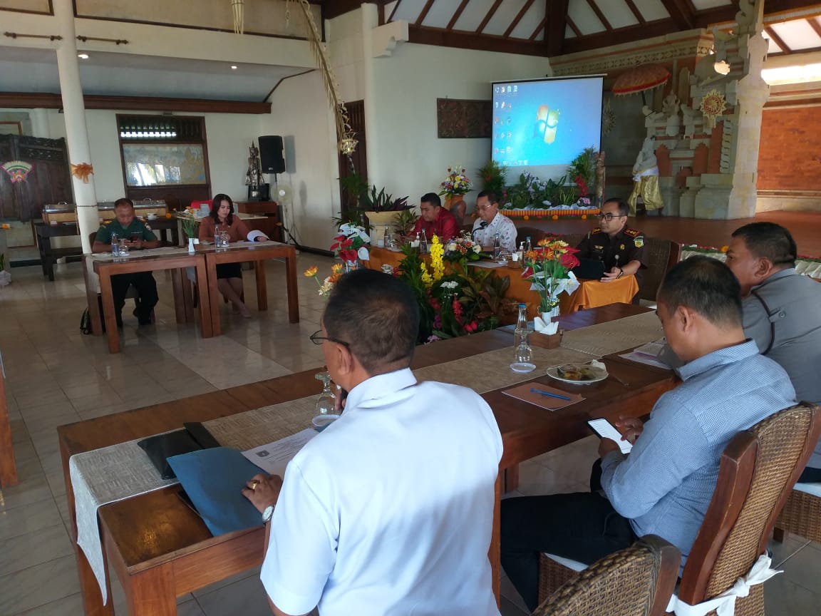 Bupati Gede Dana pimpin rapat membahas situasi dan kondisi Kabupaten Karangasem menjelang pergantian tahun, bersama FORKOPIMDA, di Hotel Puri Bagus Candidasa, Rabu (15/12/22). Rapat yang dipandu oleh Asisten I Setda Kab. Karangasem I Wayan Purna, membahas beberapa hal penting, diantaranya : antisipasi kerawanan kamtibmas pada saat malam pergantian tahun, potensi kerawanan di beberapa Desa Adat yang masih berkonflik, antisipasi aksi teror dan peredaran narkotika di wilayah Karangasem serta antisipasi dampak bencana alam gempa bumi di karangasem.