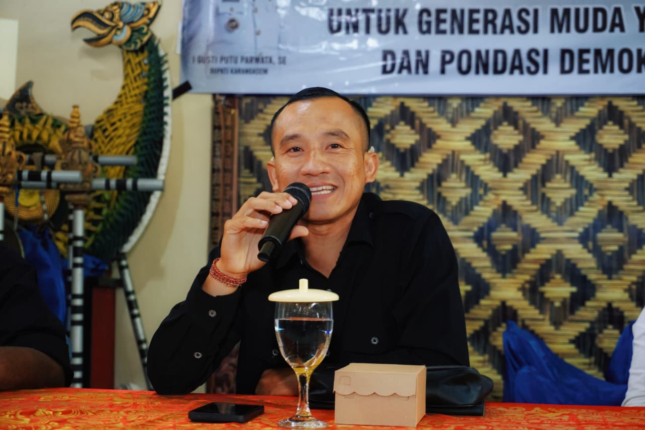 Dalam sambutan Plt. Kepala Badan Kesatuan Bangsa dan Politik Kabupaten Karangasem dalam hal ini di sampaikan oleh Kabid Podagri dan Ormas Ni kadek Yuliati, SE.,M.Si menyampaikan bahwa kegiatan ini merupakan bagian dari sub kegiatan Pelaksanaan Kebijakan di Bidang Pendidikan Politik, Etika Budaya Politik, dan Peningkatan Demokrasi, yang didasarkan pada Undang-Undang Nomor 7 Tahun 2017 tentang Pemilihan Umum dan Peraturan Menteri dalam Negeri Nomor 36 Tahun 2010.