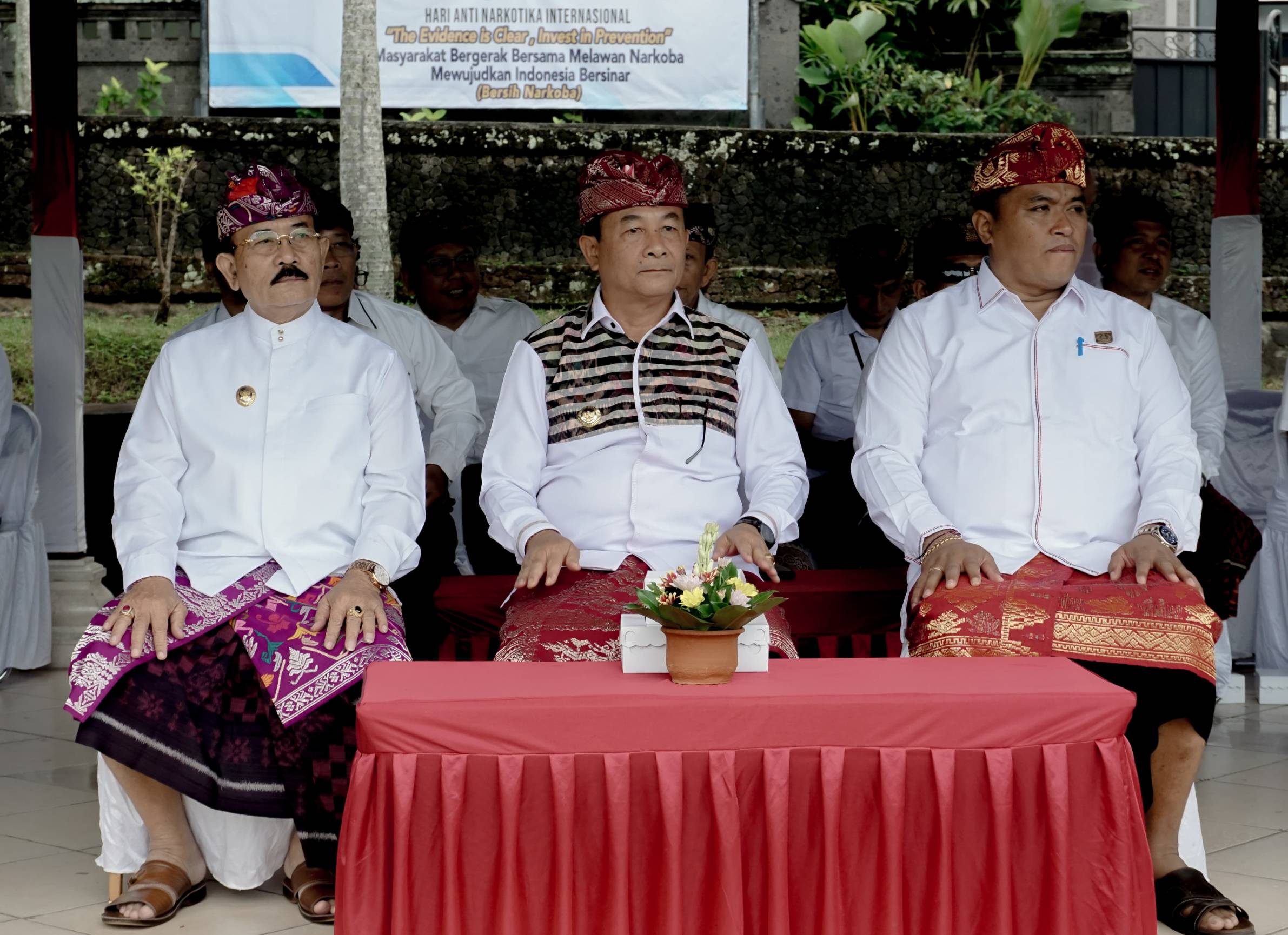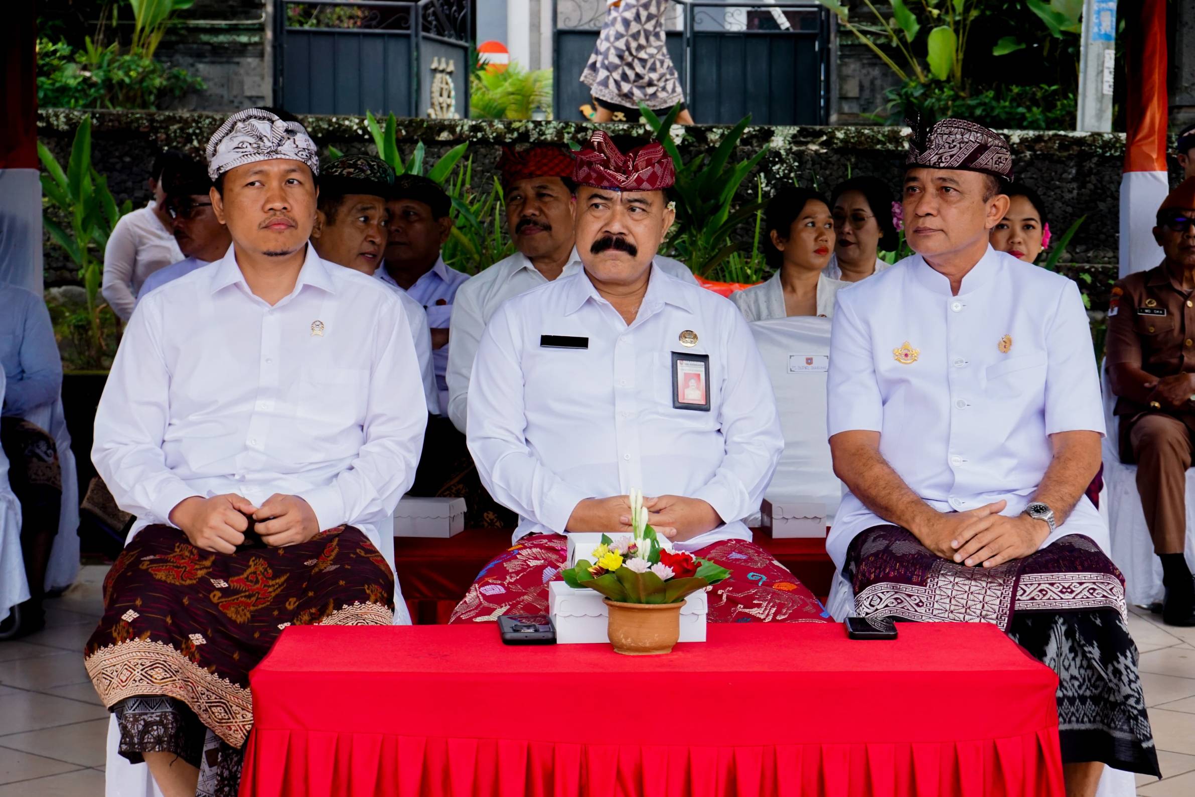 Turut hadir Bupati dan Wakil Bupati Karangasem dari masa ke masa, Forkopimda Karangasem, dan undangan lainnya. Upacara dimeriahkan dengan lagu Mars Karangasem, Hymne Karangasem, Mars Maskot Karangasem.