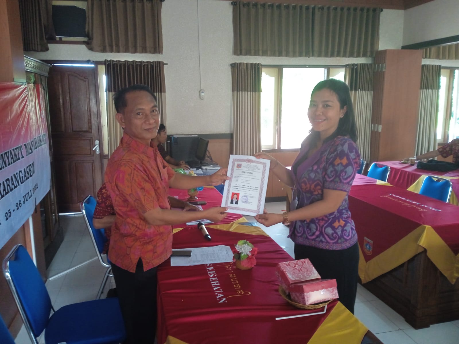 Badan Kesatuan Bangsa dan Politik Kabupaten Karangasem melalui Bidang Wasbang melakukan Kegiatan Pelatihan Kader Penyuluh Pekat, dilaksanakan pada hari Senin 25 juli 2022 dan hari selasa 26 Juli 2022, yang bertempat di Aula Dinas Kesehatan Kab. Karangasem, kegiatan penyuluhan pekat dibuka oleh Kabid Wasbang bapak Nyoman Adil, S.Pd.
