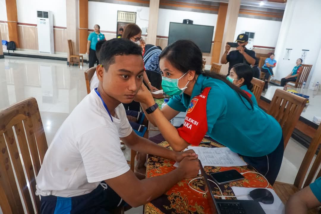 Pada Tanggal 14 Maret 2025 – Tahapan seleksi Tes kesehatan dilaksanakan di Aula SKB Kabupaten Karangasem, dengan melibatkan tim medis dari Dinas Kesehatan dan unsur terkait lainnya. Pemeriksaan mencakup tinggi dan berat badan, kesehatan mata, tekanan darah, serta kondisi fisik umum. Dari 156 peserta yang hadir, 4 siswa tidak lolos dikarenakan masalah kesehatan.